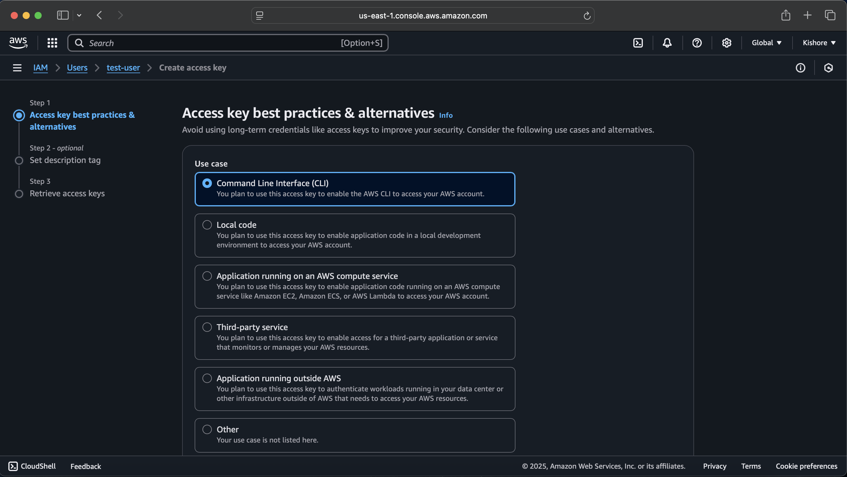 check on, I understand the above recommendation and want to proceed to create an access key.